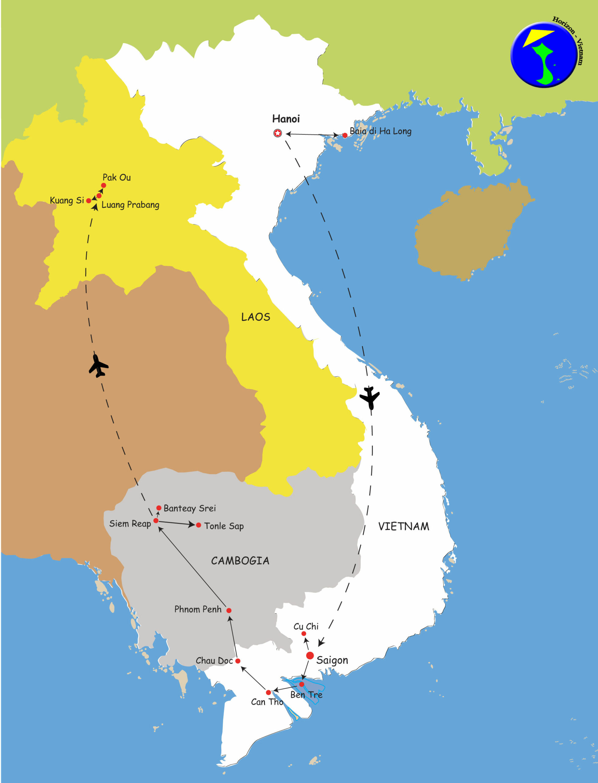 Questo tour di 15 giorni Vietnam Cambogia Laos – tre paesi dell’Indocina – il più completo, vi porta fuori dai sentieri battuti senza trascurare le più belle meraviglie naturali e storiche dell’Indocina. La scoperta della cultura, delle tradizioni e dello stile di vita degli abitanti è il filo conduttore del viaggio. Partendo dal Vietnam, la capitale di Ha Noi. Assolutamente da non perdere una crociera nella Baia di Ha Long – un luogo con la bellezza naturalistica ineguagliabile del Sud-est asiatico. Il viaggio prosegue poi verso il Sud del Vietnam con la città di Saigon, il Delta del Mekong – la regione dei risaie e frutteti. Si prosegue poi alla Cambogia – una terra misteriosa con una bellezza irresistibile, la città di Phnom Penh, il paese ospita l’imponente complesso di Angkor. L’ultima tappa sarà il Laos, avrete l’opportunità di esplorare le grotte di Pak Ou e le cascate di Kuang Si – due delle attrazioni più notevoli di Luang Prabang.