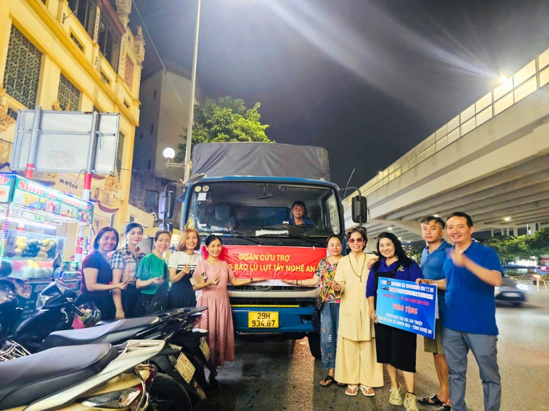 La sera del 1° agosto 2025, dalle 17 alle 23, tutti i partecipanti hanno lavorato senza sosta per caricare i colli sui camion-container, affinché le consegne potessero partire verso Con Cuông già nella notte. Nonostante la stanchezza, il caldo e il peso dei carichi, l’atmosfera è rimasta gioiosa e motivata, sostenuta da una convinzione condivisa: “Non lasciare nessuno indietro”.