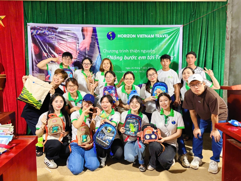 Nel maggio 2025, Horizon Vietnam ha lanciato la campagna « I vostri bagagli, il futuro dei bambini vietnamiti », invitando i viaggiatori a portare materiale scolastico per i bambini svantaggiati. Il 26 luglio 2025, grazie alla generosità di tutti, la prima azione solidale ha avuto luogo nel villaggio di Thung Mai, nella comune di Hang Kia, distretto di Mai Chau, provincia di Hoa Binh.