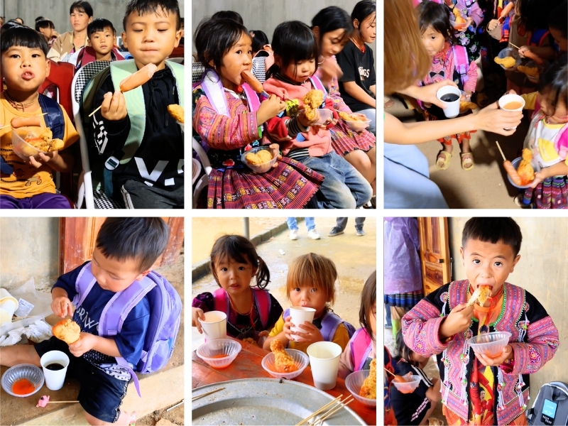 Per aggiungere un tocco di festa, ogni alunno ha ricevuto una merenda composta da una coscia di pollo fritto, una salsiccia e una bevanda gassata. Per molti bambini era la prima volta che assaggiavano questi sapori. La sorpresa e il piacere si leggevano sui loro volti e alcuni non osavano nemmeno credere che quel banchetto fosse destinato a loro. Questo momento conviviale ha illuminato tutti i volti e portato una grande gioia nel villaggio, trasformando questa giornata in un vero ricordo felice per ciascuno.