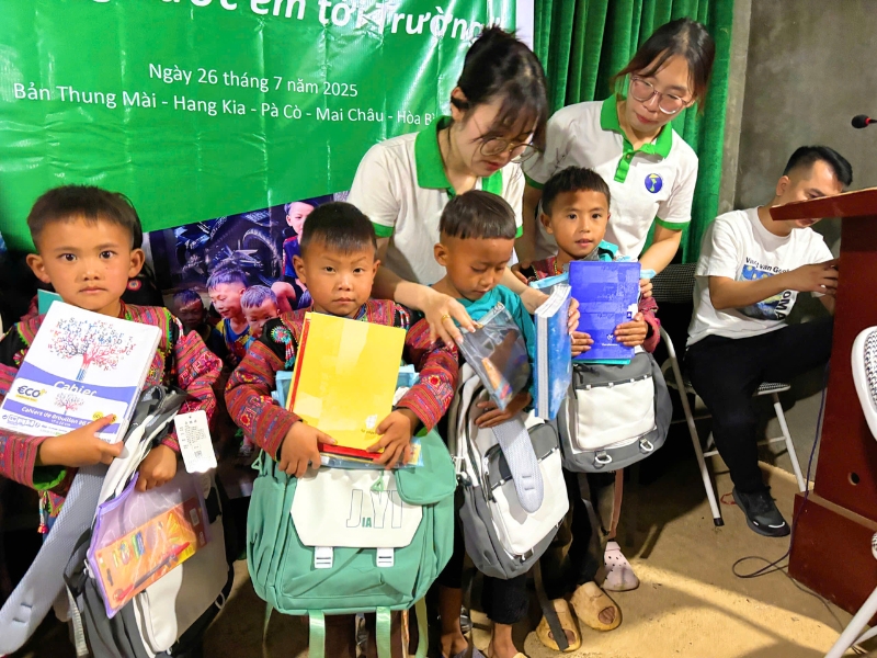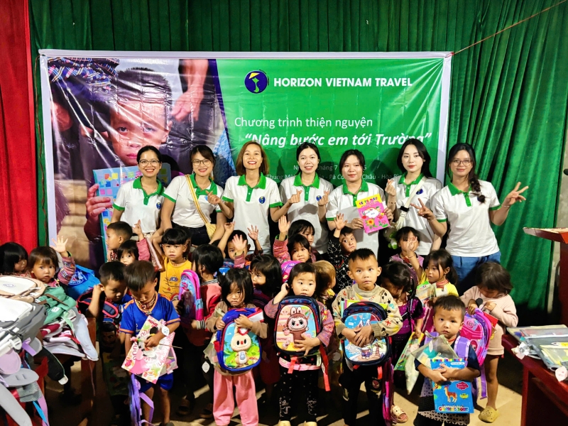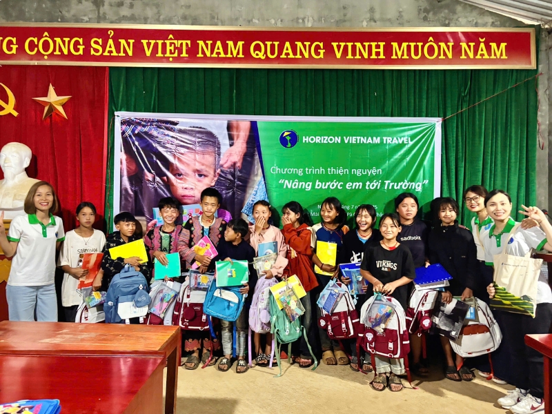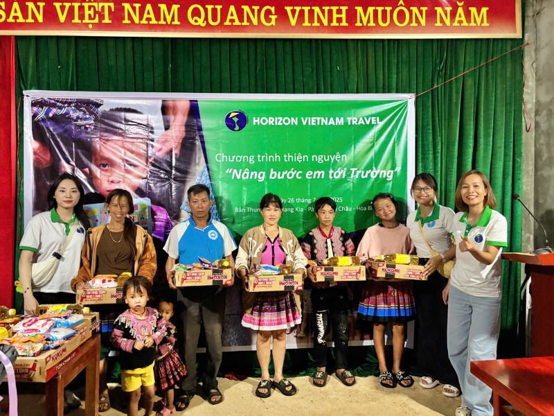 Nel maggio 2025, Horizon Vietnam ha lanciato la campagna « I vostri bagagli, il futuro dei bambini vietnamiti », invitando i viaggiatori a portare materiale scolastico per i bambini svantaggiati. Il 26 luglio 2025, grazie alla generosità di tutti, la prima azione solidale ha avuto luogo nel villaggio di Thung Mai, nella comune di Hang Kia, distretto di Mai Chau, provincia di Hoa Binh.