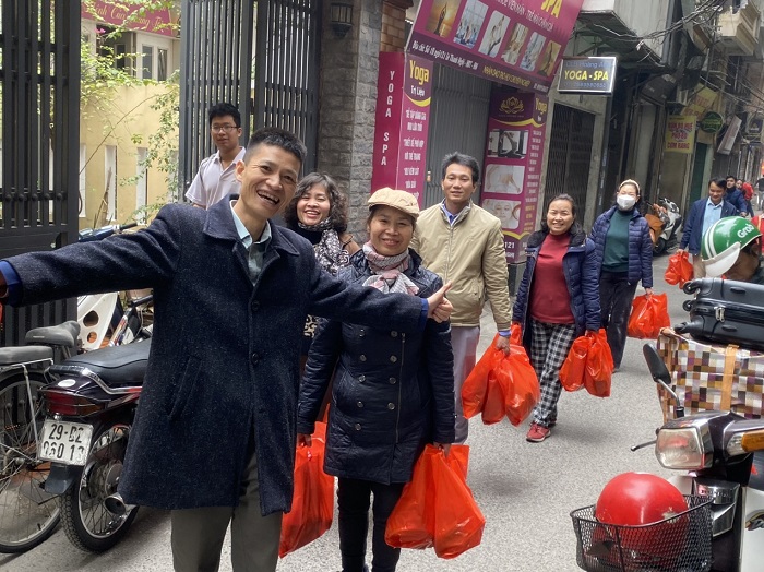 Abbiamo iniziato la giornata rendendo visita ai pazienti all’Ospedale generale di Ha Dong, Hanoi. Durante la festa tradizionale del Têt, tutti vogliono tornare per riunirsi con la propria famiglia per celebrare il Têt. Tuttavia, molte persone devono trascorrere il Têt in ospedale a causa di una grave malattia. Con la volontà di condividere lo svantaggio dei pazienti che devono restare in ospedale durante il Têt, abbiamo offerto 100 regali ai pazienti e alle loro famiglie in ospedale.