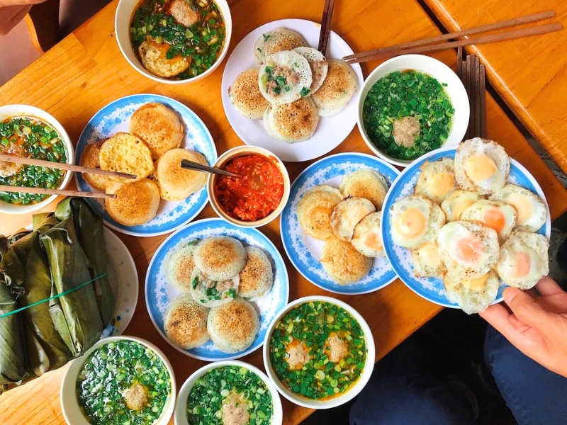 Spécialité typique des hauts plateaux, ces petites crêpes de riz sont cuites dans de petits moules en terre cuite posés sur des braises. Garnies d’œuf, de crevette ou de viande, elles sont servies chaudes avec herbes fraîches, sauce nuoc mam, et parfois un petit bouillon. Simples et conviviales, elles sont parfaites à partager lors d’un repas de rue ou dans un petit marché local.