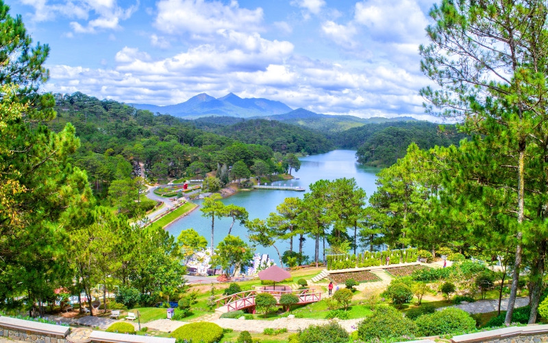 Entourée de forets de pins, de vallees verdoyantes, de lacs et de cascades, Dalat bénéficie d’un climat frais et tempéré toute l’année, ce qui lui vaut le surnom de « ville de l’éternel printemps ». Sa situation géographique en fait une halte idéale entre le sud tropical du pays et les régions montagneuses plus reculées comme Buon Ma Thuot ou Pleiku.